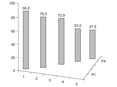 Рис. 97. Внешний долг РФ Обозначения на рисунке: 1 – внешний долг на 01.01.2005 г.; 2 – 01.01.2006 г.; 3 – 01.07.2006 г.; 4 – 01.01.2007 г.; 5 – 01.07.2007 г.