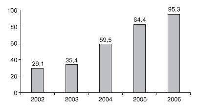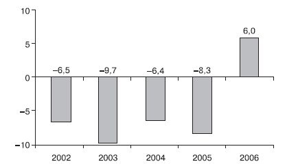 В последние 2 года сальдо баланса ввоза-вывоза капитала впервые с момента развала СССР стало положительным (т. е. в страну ввозится больше капиталов, чем вывозится; рис. 104).