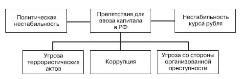 Основные причины, препятствующие ввозу капитала в РФ, см. на рис. 102.