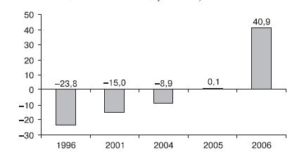 В качестве особой статьи платежного баланса выделяются "Чистые ошибки и пропуски". Дело в том, что все сделки и операции, совершаемые экономическими субъектами данной страны, не могут быть учтены. В результате для того, чтобы свести баланс, т. е. добиться нулевой разности "счета текущих операций" и "счета операций с капиталом и финансовыми инструментами", добавляют или отнимают "ошибки и пропуски". Для платежного баланса России последних лет характерен очень большой объем этой статьи (рис. 101).