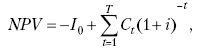 где I0 - величина первоначальных инвестиций; C t – денежный поток от реализации инвестиций в момент времени t; t - шаг расчета (год, квартал, месяц и т. д.); i - ставка дисконтирования.