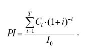 Индекс рентабельности (прибыльности, доходности) рассчитывается как отношение чистой текущей стоимости денежного притока к чистой текущей стоимости денежного оттока (включая первоначальные инвестиции):