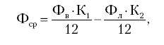 где Фв – стоимость вводимых фондов; Фл – стоимость выводимых фондов; К1 и К2 – количество месяцев эксплуатации фондов (вводимых и выводимых).