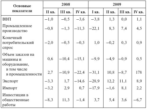 Углубление рецессии в начале 2009 г. породило еще одну проблему: с января началось снижение оптовых цен, а с февраля – розничных. В результате над экономикой страны нависла угроза дефляции, которая может существенно осложнить задачу преодоления рецессии. Эта угроза тем более реальна, что страна лишь совсем недавно смогла вырваться из дефляционной спирали, в которую вошла в конце 1990-х годов (оптовые цены начали повышаться с 2004 г., а розничные – только с 2006 г.), и позитивные тенденции еще не успели набрать силу.