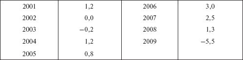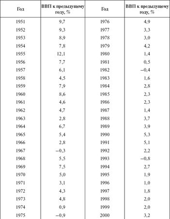 Отмеченные выше и другие проблемы, выражающие состояние упущенной модернизации экономики и социальных отношений, привели к тому, что объединенная Германия по темпам экономического роста в 1991–2004 гг. оказалась на последнем месте среди стран ЕС-15. За эти годы ее ВВП увеличился только на 40 % (для сравнения: Франция – +49 %, Австрия– +51 %, Великобритания – +73 %, лидер по данному показателю – Ирландия – +152 %). При этом в указанный период, как видно из табл. 5.1, дважды имели место кризисные сокращения ВВП по сравнению с предыдущим годом. В третий раз это произошло в рецессионном 2009 г., что ознаменовало завершение шестого экономического цикла в послевоенной истории Германии.