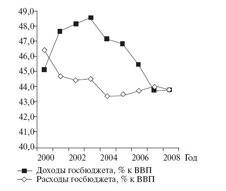 Начиная с 2000 г. доля государственных доходов в процентах от ВВП неуклонно снижалась, в то время как расходы росли умеренными темпами с 2000 до 2004 г., а с 2004 г. даже снижались. Остановимся подробнее на налоговой политике. Во время правления "большой коалиции" произошли важные изменения в налоговом законодательстве.