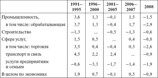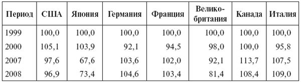 Таблица 8.5. отражает падение конкурентоспособности промышленной продукции Италии за последнее десятилетие, включая кризисный 2008 г. Среди стран "большой семерки" она выделяется наибольшим ухудшением конкурентных позиций.