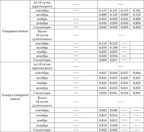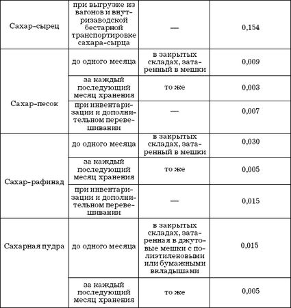 Нормы естественной убыли сахара-сырца, сахара-песка, сахара-рафинада и сахарной пудры при хранении на предприятиях сахарной промышленности