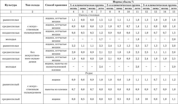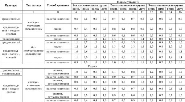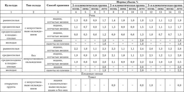 Глава 5. Нормы естественной убыли массы стоповых корнеплодов, картофеля, плодовых и зеленных овощных культур разных сроков созревания при хранении