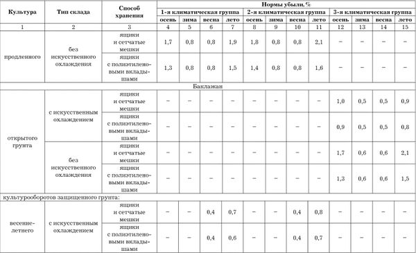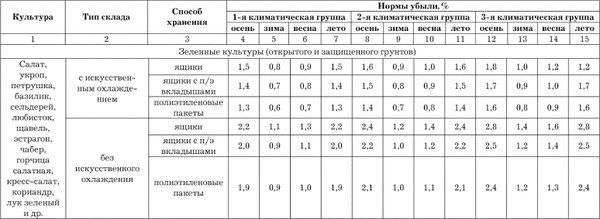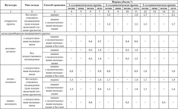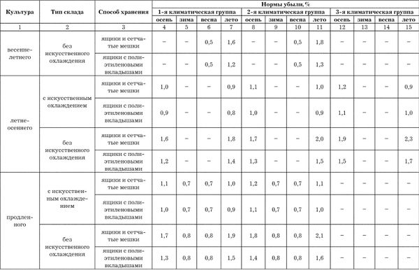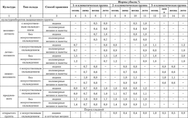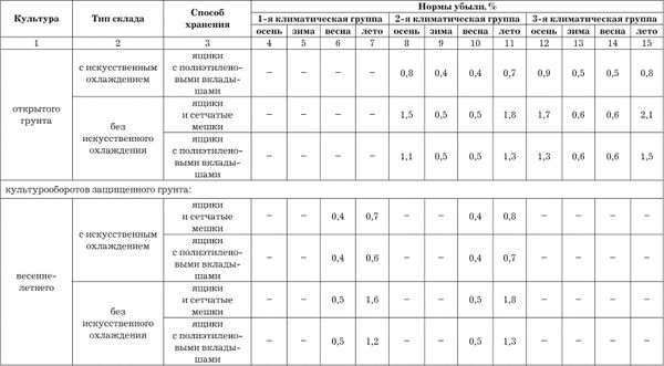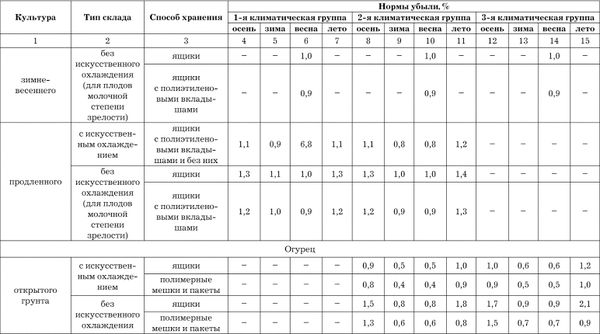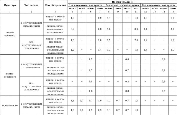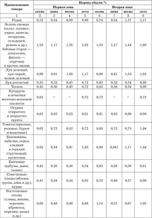 Нормы естественной убыли свежих картофеля, овощей и плодов в городской и сельской розничной торговой сети