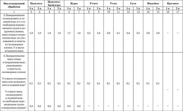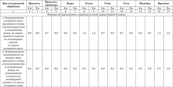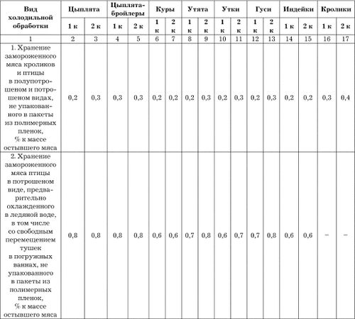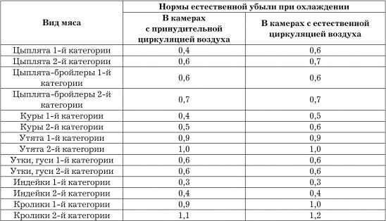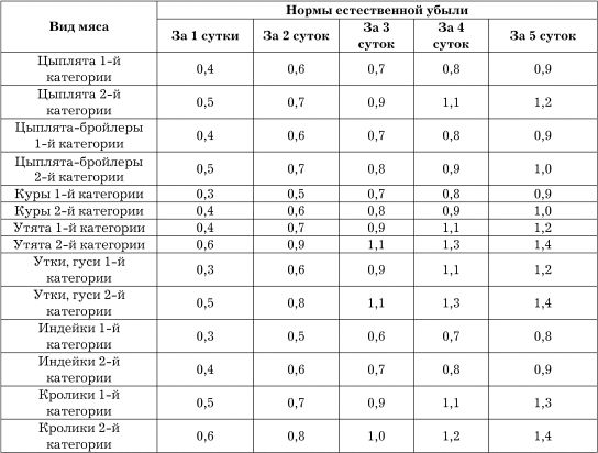 Примечание: при охлаждении мяса кроликов и птицы, упакованного в пакеты из полимерных пленок, нормы естественной убыли не применяются.