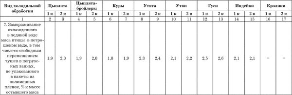 7) всех видов субпродуктов кроликов и птицы при холодильной обработке и хранении в камерах холодильников (см. табл. 28);