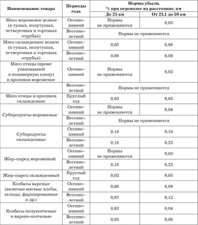 Нормы естественной убыли мяса и мясопродуктов при перевозках автомобильным транспортом