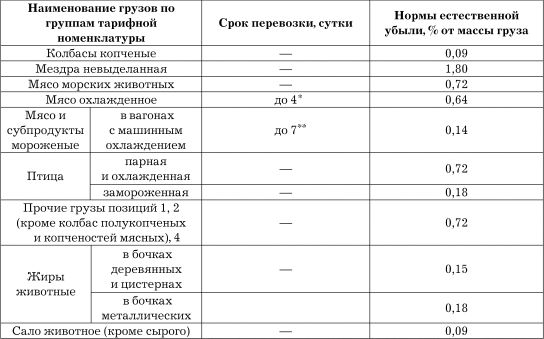 Примечание: нормы применяются при междугородних перевозках мороженого мяса всех видов в Республике Саха (Якутия), Республике Коми, Магаданской области и в районах Крайнего Севера, Красноярском крае в осенне-зимний период.