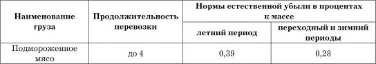 Нормы естественной убыли замороженного мяса при перевозках автомобильным транспортом
