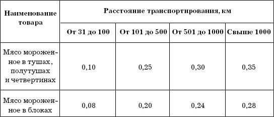 2) при перевозках водным транспортом охлажденного мяса – 0,70%, замороженного – 0,30%.