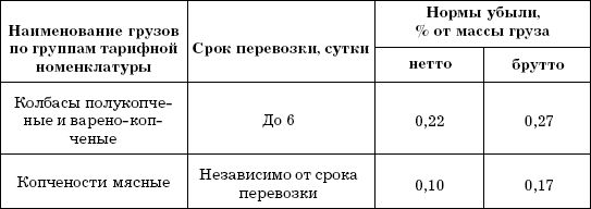 Примечание: при перевозке колбас полукопченых продолжительностью свыше 6 суток за каждые последующие сутки норма естественной убыли увеличивается на 0,01% от массы нетто-брутто.