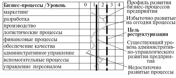 По результатам такого измерения удобно построить диаграмму, отображающую профиль развития предприятия, и выявить недостаточно развитые и избыточно развитые бизнес-процессы (рис. 2.11).