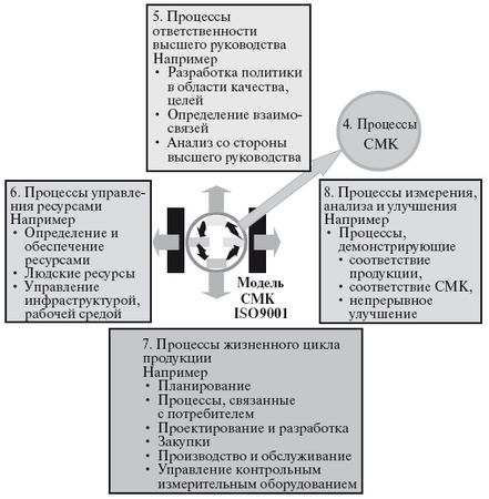 Процессы, к которым предъявляются эти требования, представлены на рис. 3.1. Нумерация процессов соответствует нумерации разделов ИСО 9001:2000, в которых описаны требования к этим процессам.