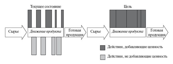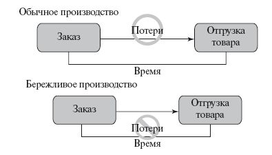 Как резюме принципов бережливого производства наиболее точно подходят слова Джона Шука – директора программы японских технологий в Мичиганском университете: "Это философия производства, в основе которой лежит сокращение времени между получением заказа и его отгрузкой путем уменьшения потерь" (рис. 4.4).