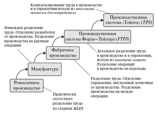 Компании – вне зависимости от рода их деятельности (производства продукции, добычи полезных ископаемых, производства услуг, выполнения научных исследований) – могут иметь следующие виды организации производства: ремесленное, мануфактурное, индустриальное (фабричное), поточное, или производственную систему Форда – Тейлора (ФТПС), и производственную систему "Тойота" (ТПС). Для удобства основные характеристики видов организации производства сведены в таблицу (табл. 1.2).