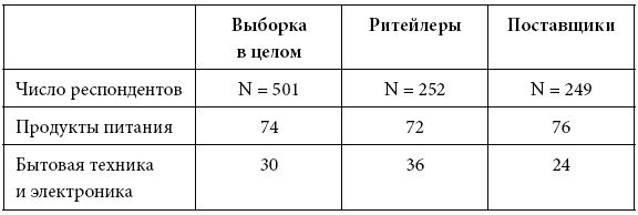 Отбор респондентов. Всего была собрана 501 заполненная анкета. Среди респондентов оказались 252 менеджера по закупкам, представляющих предприятия сетевой розничной торговли, и 249 менеджеров по продажам из компаний-поставщиков. Соотношение опрошенных представителей поставщиков и розничных сетей в каждом регионе было примерно равным [25].
