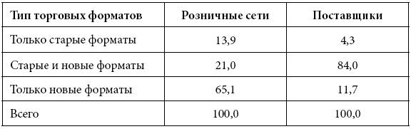 4. Розничные сети работают с меньшим числом торговых форматов, чем их более "всеядные" поставщики; и в значительно большей степени тяготеют к новым, современным торговым форматам.