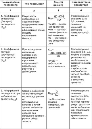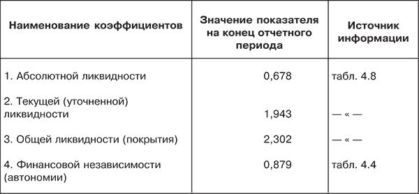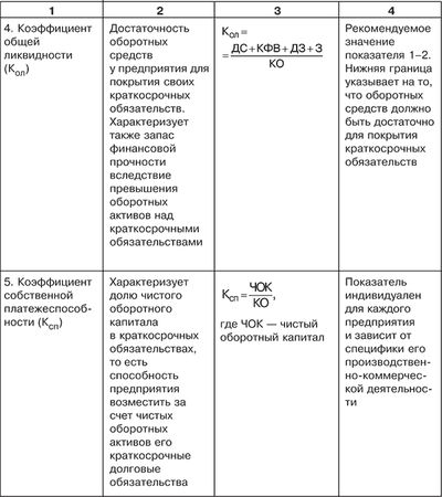 Таблица 4.7. Финансовые коэффициенты, применяемые для оценки ликвидности и платежеспособности предприятия