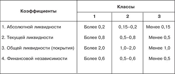 По значениям финансовых коэффициентов, приведенных в данной таблице, общество относится к первому классу кредитоспособности. Поэтому банк вправе выдать ему кредит в обычном порядке без ограничений.