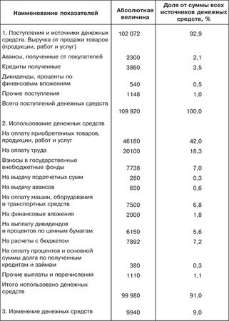 Таблица 5.2. Вертикальный анализ поступлений и расходования денежных средств по акционерному обществу