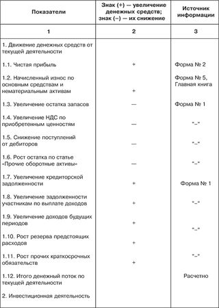 Таблица 5.3. Алгоритм расчета потока денежных средств косвенным методом