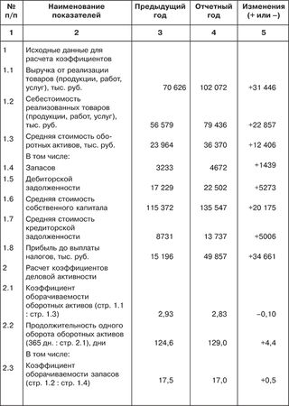 Анализ эффективности использования активов с помощью коэффициентов деловой активности рассматривается на примере оборотных активов. Следующие показатели позволяют осуществлять анализ состояния и контролировать эффективность использования оборотных средств: