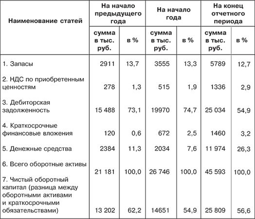 Таблица 6.2. Структура оборотных активов акционерного общества