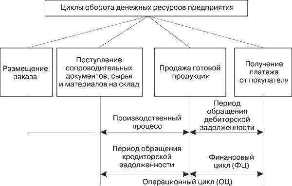 Разрыв между сроками платежа по своим обязательствам перед поставщиками и получением денежных средств от покупателей является финансовым циклом (ФЦ), в течение которого они отвлекаются из оборота предприятия.
