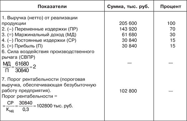 СВПР показывает, во сколько раз маржинальный доход превышает прибыль. Чем выше СВПР, тем больше предпринимательский риск, связанный с данным предприятием.
