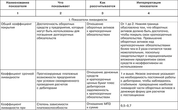 Таблица 1.1. Отдельные показатели, рекомендуемые Минэкономики РФ для аналитической работы