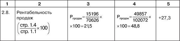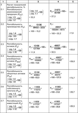 Важным аспектом анализа рентабельности является оценка доходности объема продаж и расчет факторов, влияющих на ее состояние (влияние цены продукции и ее себестоимости). В этих целях необходимо использовать следующую аналитическую таблицу (табл. 7.10).