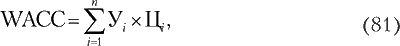 где Уi– удельный вес i-го источника финансирования проекта в общем объеме финансовых ресурсов,%; Цi– цена привлечения i-го источника для предприятия, реализующего данный проект, доли единицы; n – общее число источников финансирования (i = 1, 2, 3…, n).