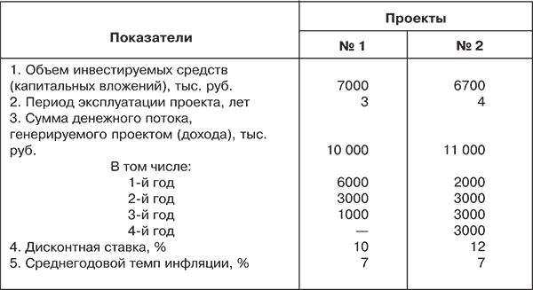 Таблица 8.1. Исходные данные по двум инвестиционным проектам