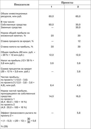 Таблица 8.4. Расчет эффекта финансового рычага по двум инвестиционным проектам