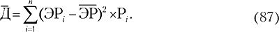 Вариация оценивается дисперсией (Д), т. е. мерой разбросов (рассеяния, отклонения) фактического значения признака от его средней величины. Средневзвешенная дисперсия устанавливается по формуле: