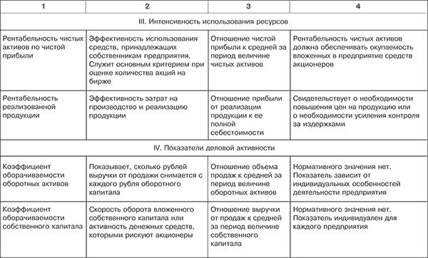 Во вторую группу входят ненормируемые показатели, которые обычно сравниваются в динамике за ряд периодов или со значениями этих же показателей на аналогичных предприятиях. В данную группу входят показатели рентабельности и оборачиваемости активов и собственного капитала, структуры имущества и капитала и др.