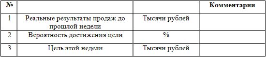 Это контрольный еженедельный лист для сотрудника. А вот образец контрольного листа для начальника отдела: