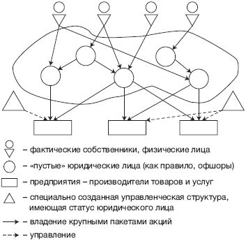 Рис. 2.2. Структура собственности и управления типичной российской интегрированной бизнес-группы (ИБГ) или компании в 1990-е гг.
