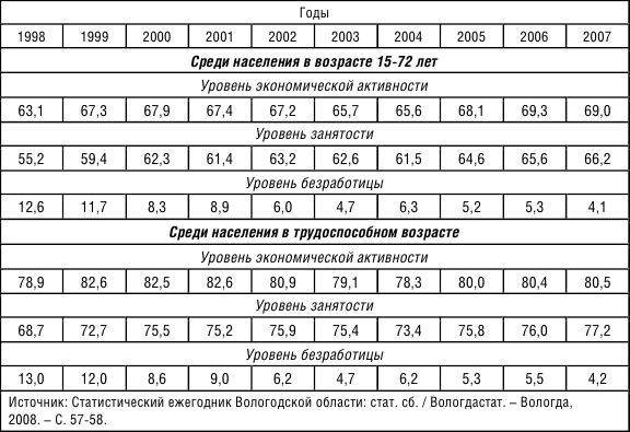 Таблица 2.9. Численность экономически активного населения Вологодской области в возрасте 15–72 лет