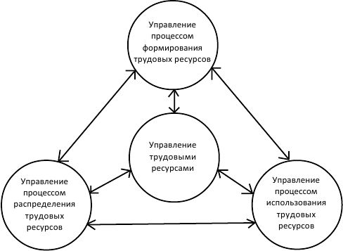 Управление трудовыми ресурсами представляет сложную динамическую подсистему общей системы управления экономикой региона и страны в целом, это своего рода социально-экономическое отношение, посредством которого общество осуществляет регулирующее воздействие на формирование, распределение и использование трудовых ресурсов [34] (рис. 2.9).