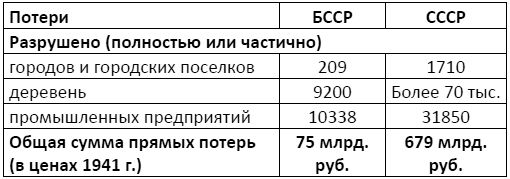 В 1944 г. советское правительство ассигновало на восстановление хозяйства БССР 490,7 млн. рублей, в 1945 г. – 1200 млн. рублей. В 1944 – первой половине 1945 гг. БССР получила 6 энергопоездов, 37 металлообрабатывающих предприятий (общее количество станков – 7 тыс.), полные комплекты оборудования для автомобильного, велосипедного и инструментального заводов в Минске, стеклозаводов в Витебске, Гомеле и Минске, для Могилевской фабрики искусственного волокна, Оршанского льнокомбината и др.