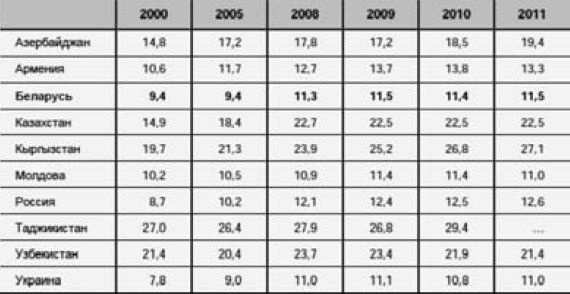 (Источник: Беларусь и страны СНГ: Стат. сб. / Белстат. – Мн., 2012. – С. 14.)
