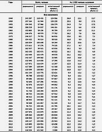 Обращает на себя внимание динамика естественного прироста и убыли населения. Так, с 1940-х до "перестроечных" лет население БССР быстро прирастало, что и является лучшей характеристикой социально-экономической политики, проводимой в те годы. Затем начинается снижение рождаемости и рост смертности. С 1993 года постсоветская Белоруссия уже прочно становится на рельсы неуклонного роста показателя естественной убыли населения, которая достигает пика в первую пятилетку XXI века. В 2014 году показатель естественной убыли населения удалось сократить почти в 13,5 раз к уровню 2000 года, в чём несомненная заслуга мигрантов и белорусских женщин фертильного возраста, поддержанных социальными гарантиями (табл. 6).