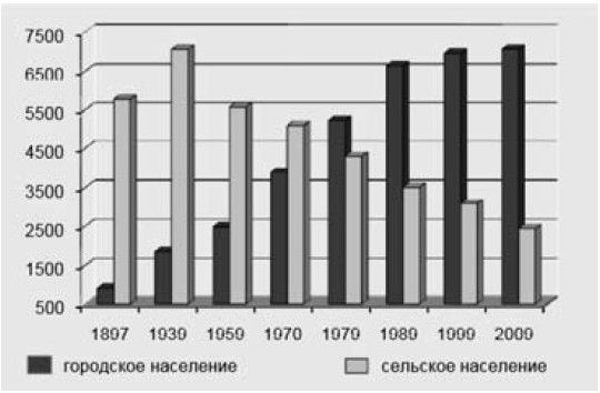 Рис. 4.Численность городского и сельского населения (тыс. чел., по данным переписи 2009 г.)